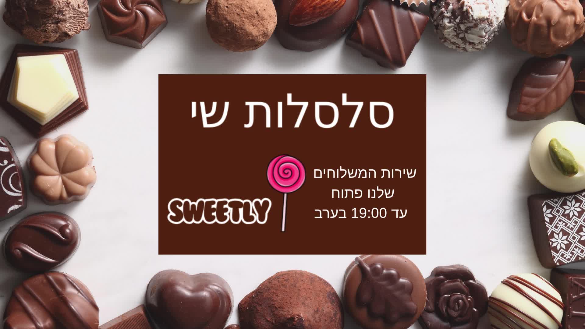 אתר Sweetly הוא הבחירה המושלמת עבור מי שמחפש להפתיע במשלוח מתוק. עם מגוון רחב של סלסלות שוקולד, חבילות שי, מתנות לכל אירוע ושירות משלוחים מהיר, אנו כאן כדי להפוך את כל הרגעים החשובים בחיים לבלתי נשכחים. בחרו באתר Sweetly ותנו ליקיריכם את המתנה המתוקה ביותר שיגרום להם לחייך.